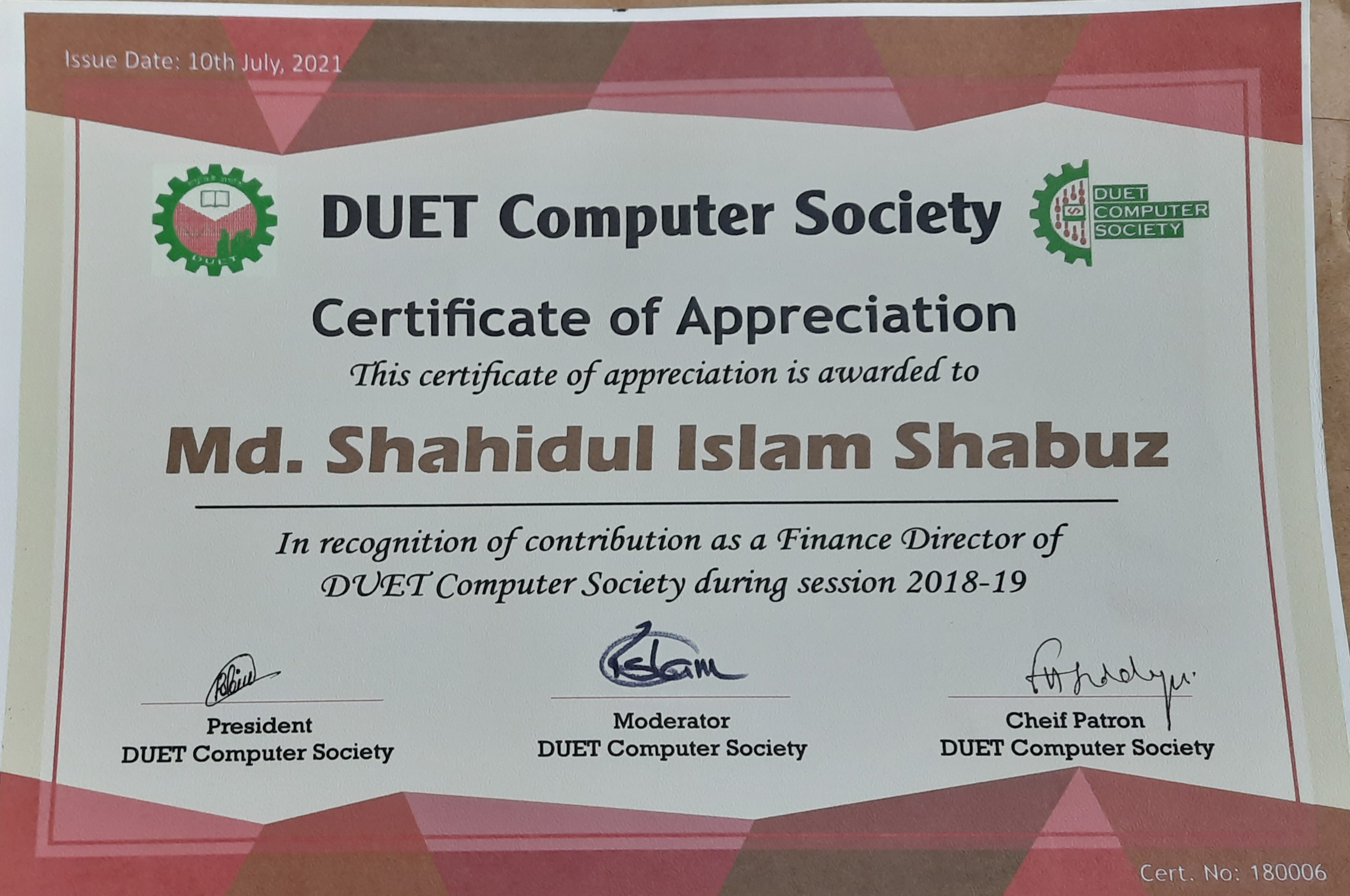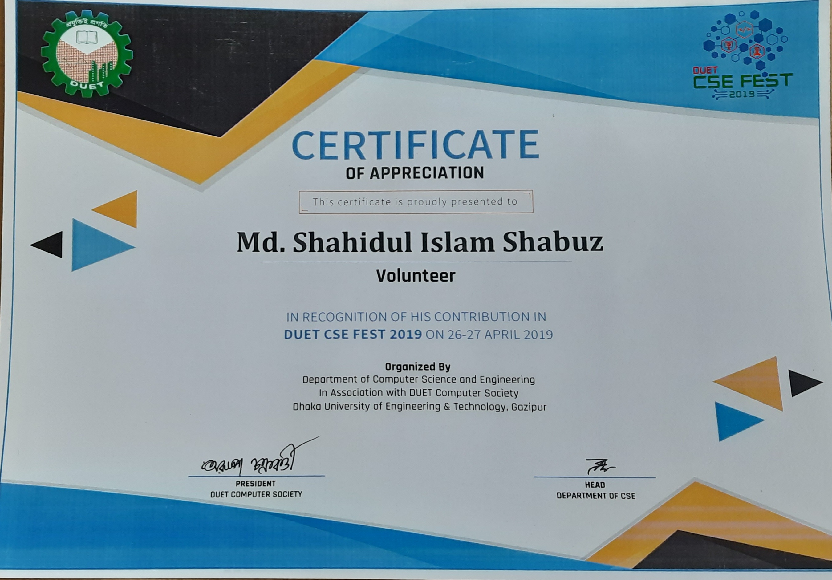 Event Organizer DUET CSE FEST 2019(Certificate)